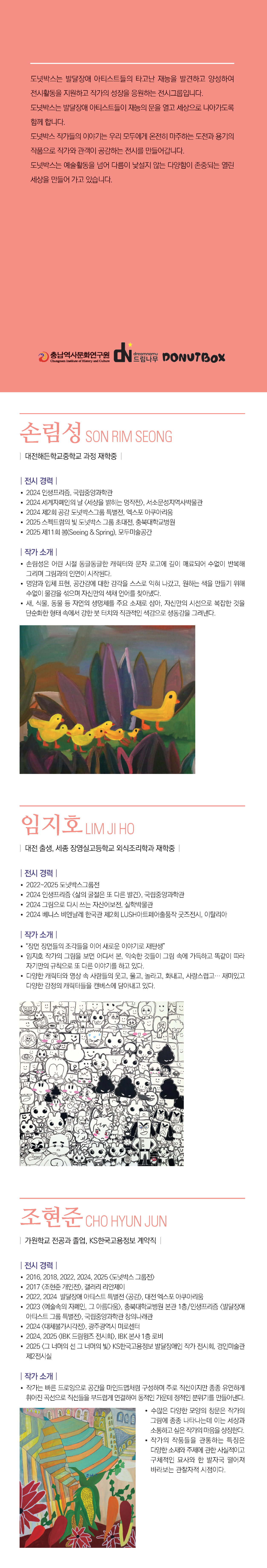 이번 전시는 충청남도의회 박기영 행정문화위원장의 제안으로 시작되었으며, 충남역사문화연구원이 주최하고 도넛박스와 드림나무 아동청소년발달센터가 공동으로 주관한다. 총 13명의 발달장애 예술가가 참여해 회화 작품을 비롯한 다양한 작품을 선보이며, 작가들의 삶의 궤적과 소중한 기억이 담긴 영상 기록과 소품도 함께 전시된다. 관람객들은 단순한 작품 감상을 넘어 예술가들의 이야기에 공감하고, 그 속에서 우리 사회가 함께 나아가야 할 가치에 대해 생각하는 기회를 갖게 될 것으로 기대된다.